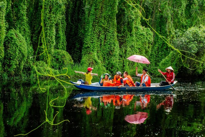 Ubicado a unos 100 kilómetros de Ciudad Ho Chi Minh, el pueblo flotante de Tan Lap es un sitio atractivo para los turistas que desean explorar la belleza única del Delta del Mekong. El vasto y pintoresco paisaje con su atmósfera refrescante y agradable no solo atrae a los exploradores internacionales, sino también a los jóvenes que buscan una escapada de fin de semana.