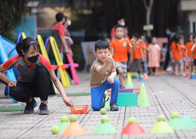Luego de un largo periodo de suspensión de las actividades escolares a causa del Covid-19, las escuelas de Hanói preparan instalaciones, docentes y personal para atender la enseñanza y el cuidado de los niños. (Fotografía: VNA)