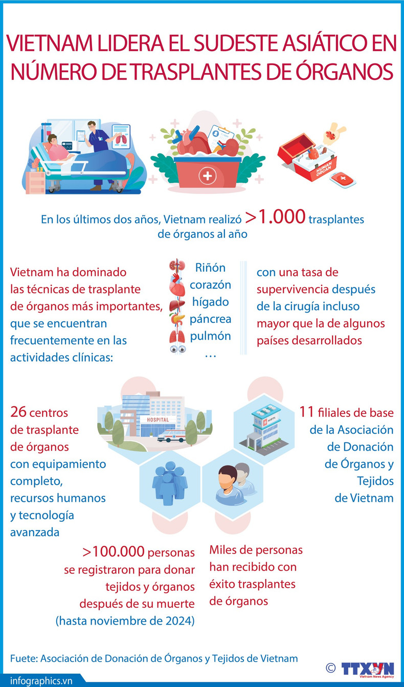 Vietnam se ha convertido en la nación líder en el Sudeste Asiático en materia de trasplantes de órganos, al realizar anualmente más de mil operaciones durante los últimos dos años.