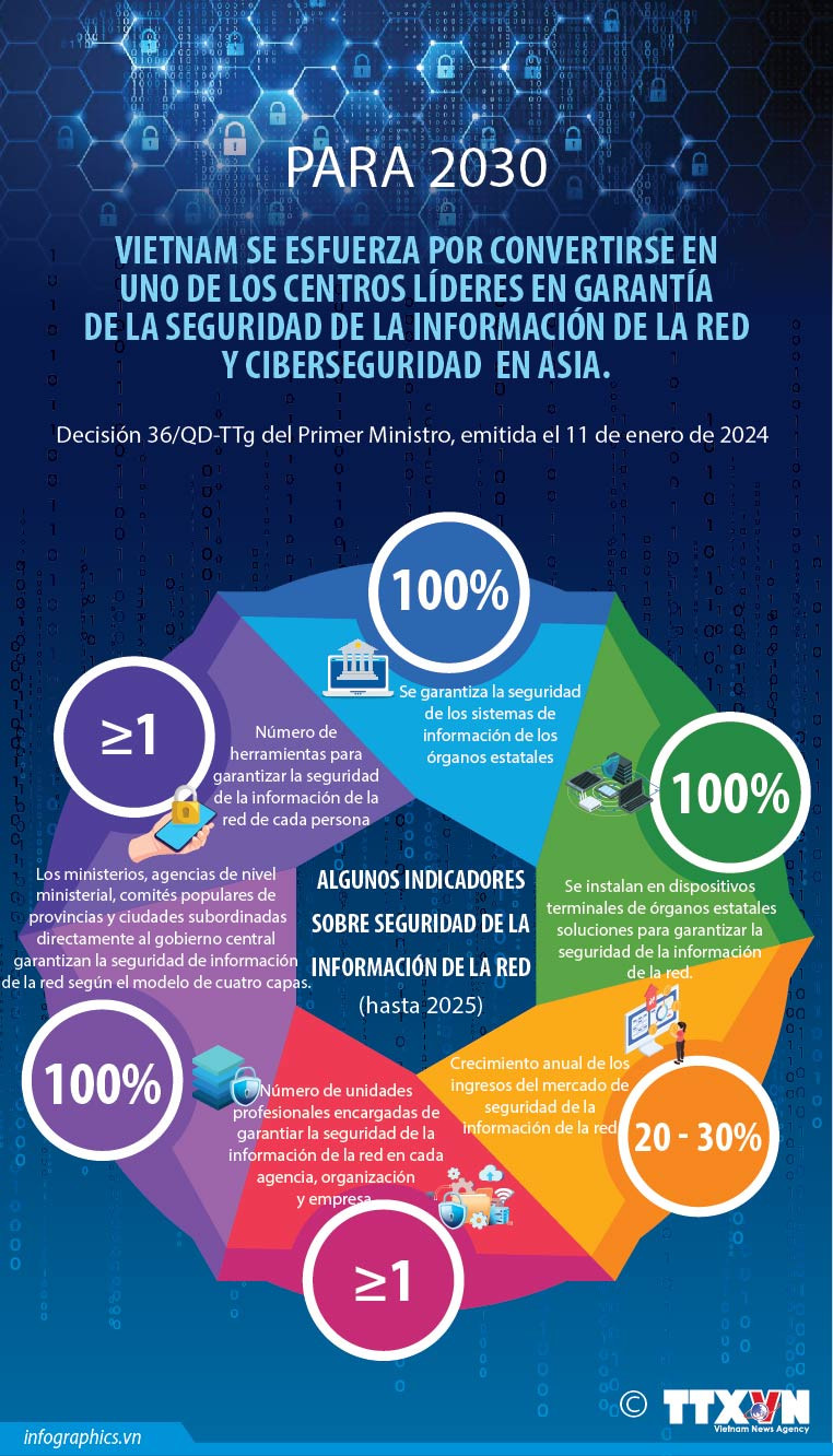 La planificación de la infraestructura de información y comunicaciones para el período 2021-2030, con una visión hasta 2050, de Vietnam traza el objetivo de que para 2030 el país indochino se convierta en uno de los principales centros en la garantía de la seguridad de la información de la red y ciberseguridad en Asia.