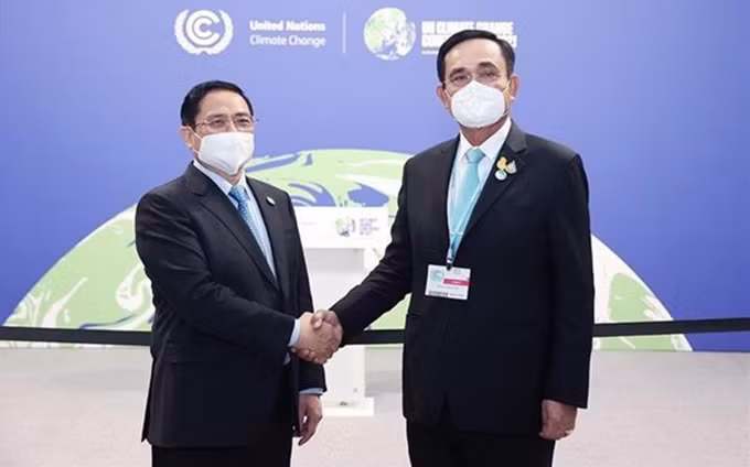 Los primeros ministros de Vietnam, Pham Minh Chinh, y de Tailandia, Minh Chinh y Prayut Chan-o-cha. (Fotografía: VNA)