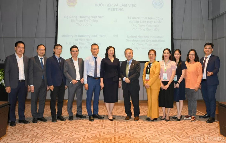 | La viceministra Phan Thi Thang sostiene una reunión con Yuko Yasunaga, subdirector de la Organización de Desarrollo Industrial de las Naciones Unidas. |