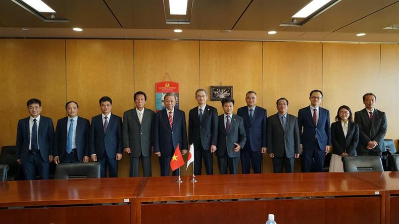 El mismo día, To Lam sostuvo conversaciones con el comisionado general de la Agencia Nacional de Policía (NPA) de Japón, Yasuhiro Tsuyuki, durante las cuales se comprometieron a facilitar el intercambio de delegaciones de todos los niveles, mantener el diálogo anual sobre seguridad a nivel de viceministros, compartir información y experiencia en la lucha contra los delitos transnacionales, criminales, cibernéticos y de drogas, y considerar un nuevo mecanismo práctico de cooperación entre el Ministerio de Seguridad Pública de Vietnam y la NPA.