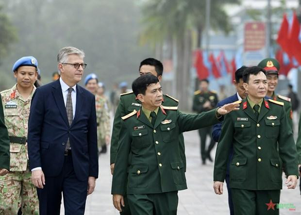 | El secretario general adjunto de Operaciones de Paz de la ONU, Jean-Pierre Lacroix, visita el Departamento de Mantenimiento de la Paz de Vietnam. (Fotografía:VNA) |