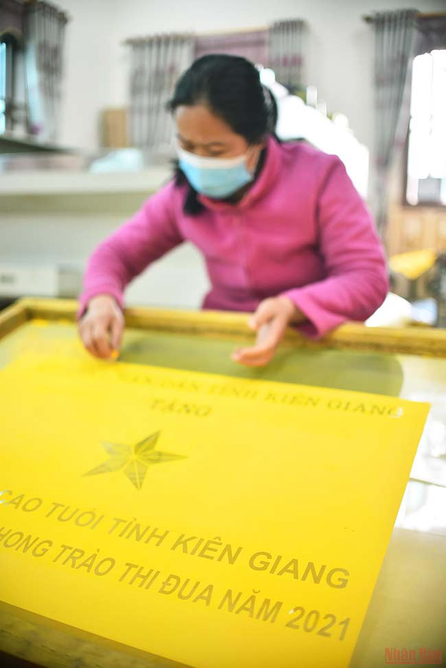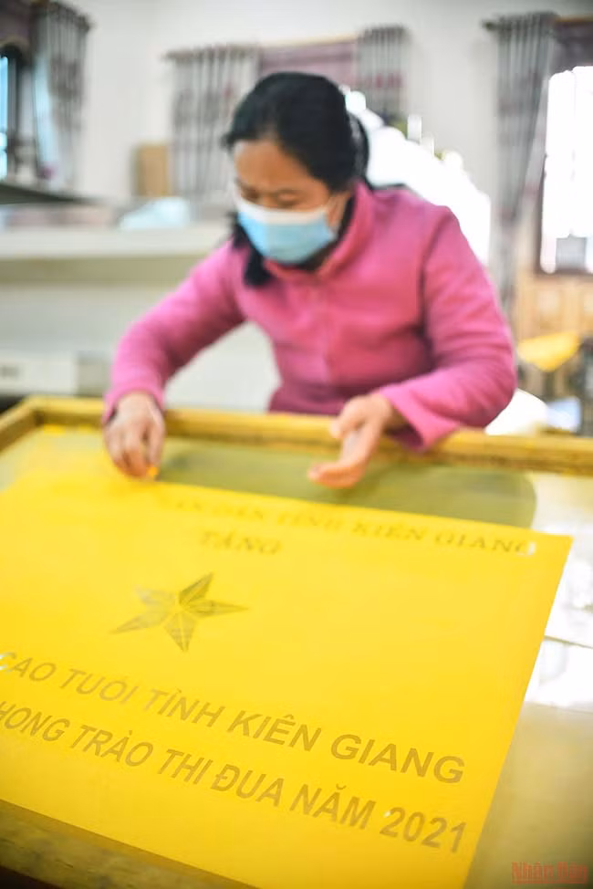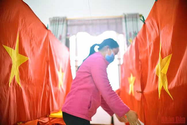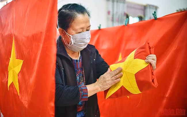 El establecimiento de Thi Nhung provee a todo el país banderas cosidas a mano, sobre todo las nacionales. En aras de cumplir los requisitos de calidad, los productos deben atravesar etapas complicadas solo confiadas a artesanos consumados.