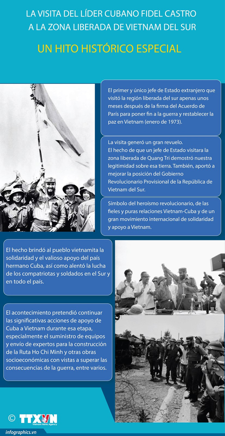 La visita del líder cubano Fidel Castro a las zonas liberadas del Sur de Vietnam hace 50 años fue un hito histórico especial en la relación entre Vietnam y Cuba, así como un símbolo del movimiento internacional de solidaridad y apoyo a la lucha del pueblo vietnamita por liberación nacional.