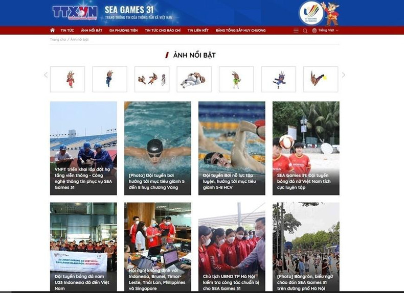 La VNA utiliza la plataforma digital como un canal de distribución de información efectivo, especialmente contenido multimedia en diferentes idiomas para difundir noticias ampliamente a los usuarios de todo el mundo. En la foto: La interfaz de la página de información sobre los XXXI Juegos Deportivos del Sudeste Asiático (SEA Games 31).