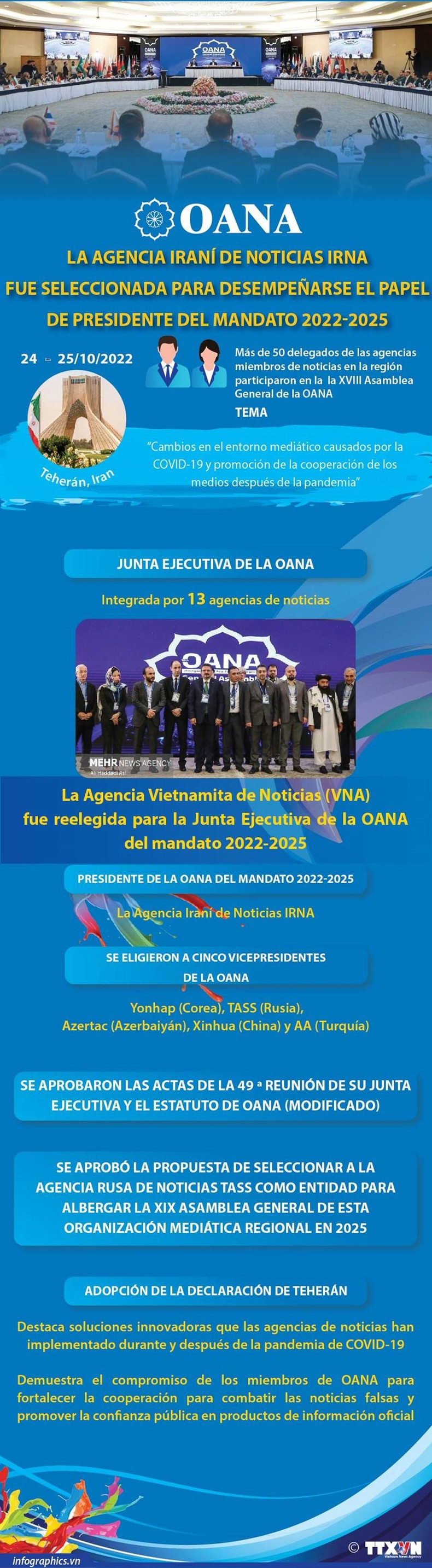 La Agencia Vietnamita de Noticias (VNA) fue reelegida para la Junta Ejecutiva de la Organización de Agencias de Noticias de Asia y Pacífico (OANA) para el período 2022-2025 durante la XVIII Asamblea General de ese ente.