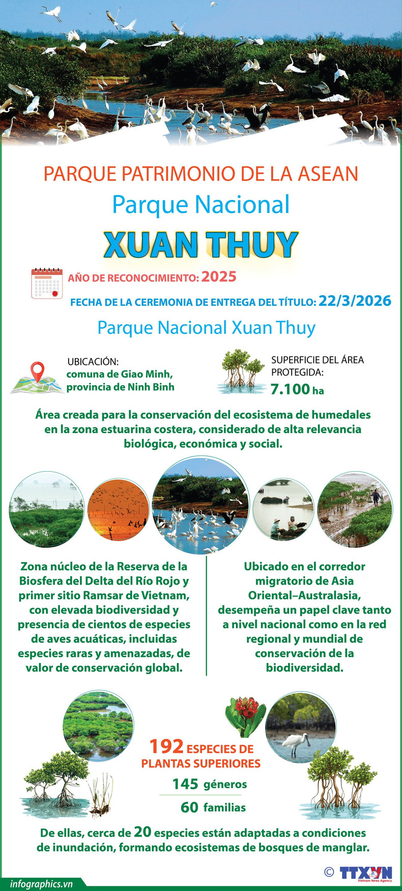 Reconocido por sus humedales costeros y su rica biodiversidad, el Parque Xuan Thuy alberga numerosas especies de aves acuáticas raras y en peligro. Este título impulsa oportunidades de desarrollo sostenible y refuerza el compromiso con la conservación de su patrimonio natural.